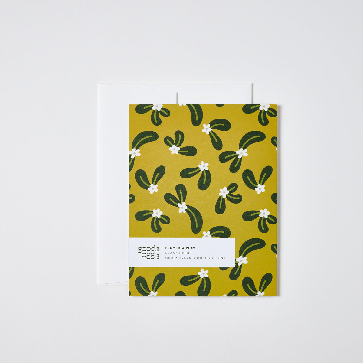 “Plumeria Play” Greeting Card by Good Egg Prints.