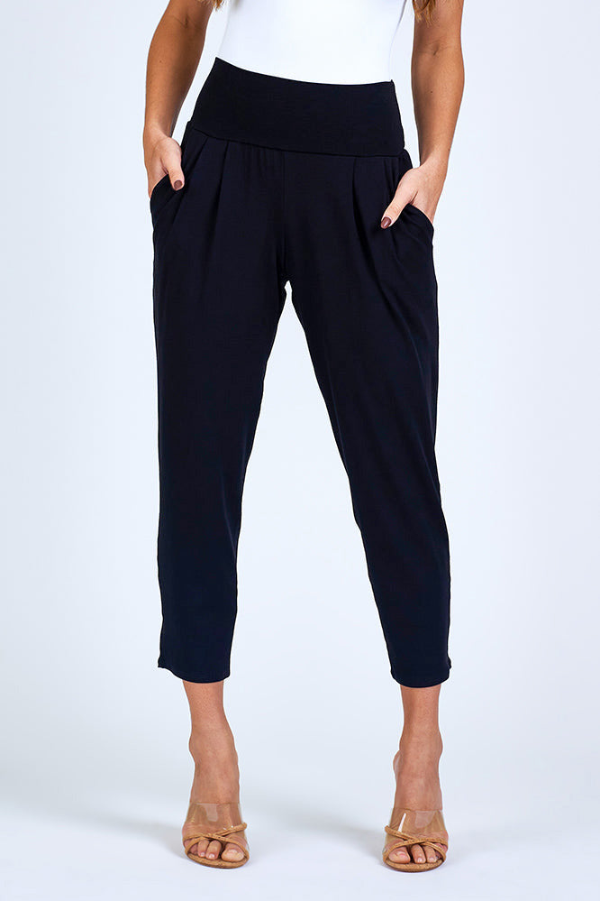 Introducing our must-have Pleat Front Cropped Pants! Designed with a signature wide waistband for a flattering and comfortable fit. Perfect for any occasion, you'll want to buy multiple of these stylish and versatile pants!