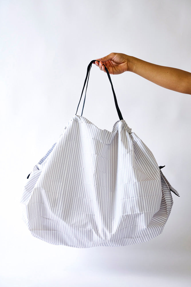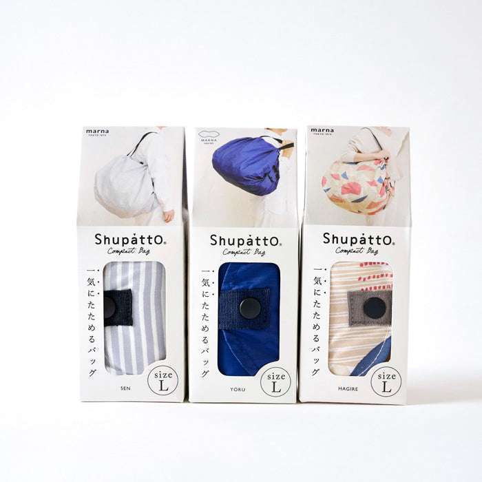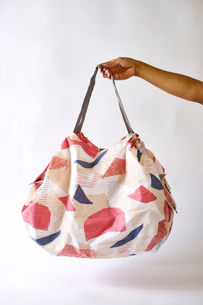 The Shupatto "ONE-PULL" Foldable Bag is cleverly designed with accordion pleats, allowing it to expand into a spacious, roomy bag and fold flat instantly with a single pull from both ends.