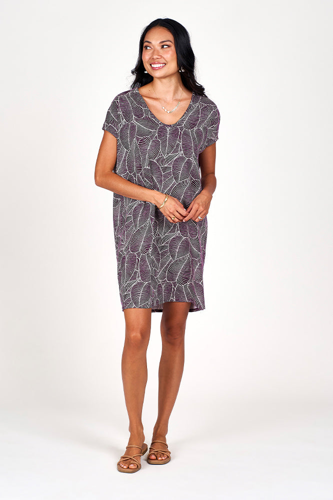 The Comfy Dress lives up to its name! But don’t be fooled—it’s perfect not just for lounging in style but also for stepping out with flair. Whether you cinch it with the a cute belt to highlight your waist or pair it with casual shoes for an easygoing vibe, this dress is so versatile you’ll never want to take it off. And now, it’s available in the stunning Geo Leaf print in a rich plum shade, adding a fresh twist to a beloved favorite.