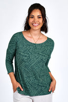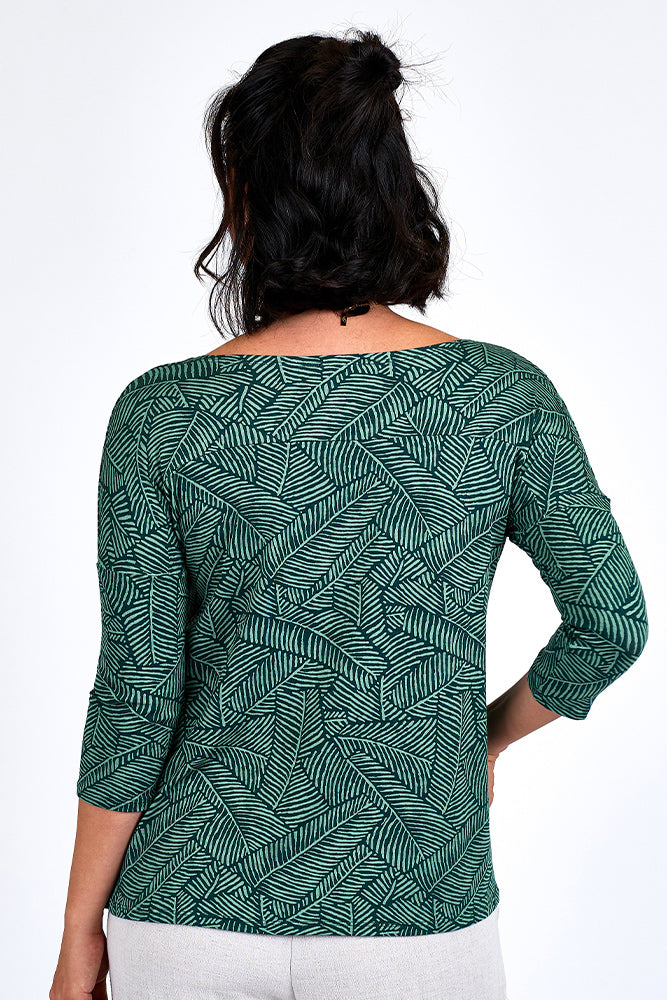 Our 3/4 Sleeve Trapeze Top showcases a distinctive hand-drawn Royal Palm print in vibrant emerald, perfectly mixing modern style with tropical allure. Whether you're tackling busy days or enjoying relaxed weekends, this classic piece exudes confidence and effortless sophistication, destined to become one of your many Always A.line go-to favorites in your wardrobe.