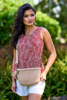 Step out feeling confident and prepared with this tank, perfect for everyday use! Its adaptable style makes it a favorite for any setting. Featuring our striking Geo Leaf print in a fresh new color, it adds a touch of tropical holiday cheer. Make sure to include this essential piece in your wardrobe!