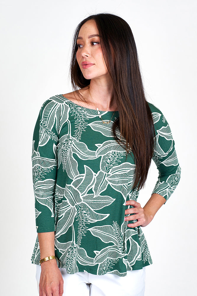 Experience both comfort and style with our 3/4 Sleeve Trapeze Top, featuring a unique hand-drawn torch ginger print that blends modern edge with lush tropical charm. Ideal for busy days or laid-back weekends, this timeless piece radiates confidence and sophistication, making it a lasting favorite in your wardrobe.