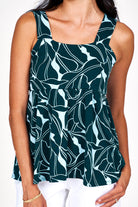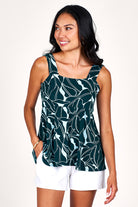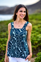The Seaside Tank is your new go-to for effortless style with a playful twist. Designed with broad shoulder straps for comfort and support, its flirty peplum silhouette adds a flattering shape that moves with you. The stunning Lush Palm print in a refreshing sea green colorway brings a touch of tropical charm, making it easy to mix and match with your favorite jeans, shorts, or skirts. Perfect for dressing up with accessories or keeping it laid-back, this tank lets you express your unique vibe while staying cool and comfortable all day long.