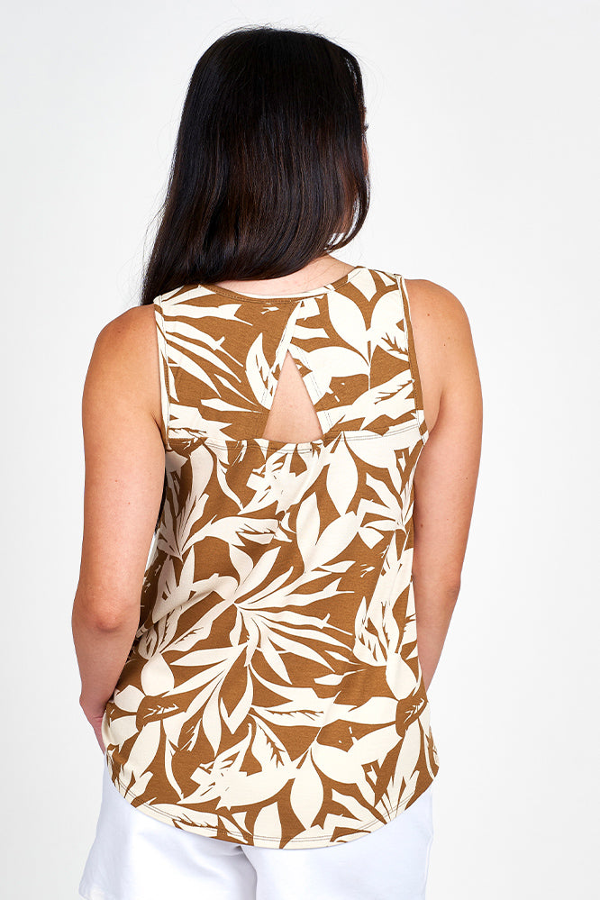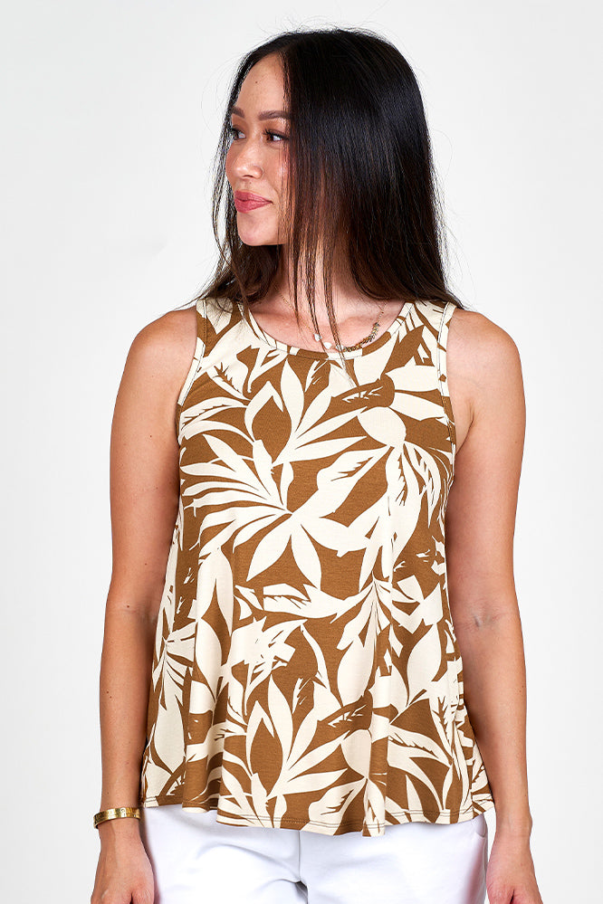 Our classic triangle back tank is refreshed while keeping the comfort you love. The Sunrise Tank offers a sleek, relaxed vibe perfect for warm, sunny days. Combining stylish design with breathable ease, it now comes in a vibrant amber shade featuring the popular Modern Tropics print—capturing the spirited feel of island life.