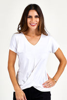 The twist front top is the must-have piece everyone’s been talking about. Loved for its flattering v-neck and distinctive twist detail, it pairs effortlessly with all your favorite bottoms. Think of it as the classic white tee’s stylish upgrade—versatile enough to take you from day to night with ease and flair. White is shining bright this summer—make sure you don’t miss out!