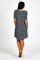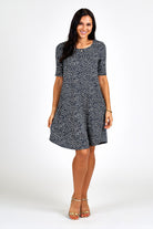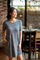 Slip into effortless style with this charcoal gray elbow sleeve dress, showcasing our stunning Monstera Maze print. Perfect for taking you from desk to dinner without skipping a beat, this piece adapts to your day with just a few accessory swaps. Craving a pop of color? Layer on your favorite jewelry and watch the magic happen. And those pockets? They're real ! Pure island ease.