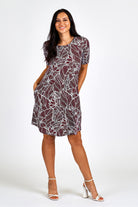 This elbow sleeve dress is a true crowd-pleaser, and we're thrilled to bring it back in our gorgeous Outline Lotus print rendered in rich sangria. Designed for seamless transitions from daytime errands to evening celebrations with your friends or ohana, this dress is your new go-to for any occasion. The flattering three-quarter sleeves offer just the right amount of coverage while keeping things breezy and chic. Yes, functional pockets are here to stay. It's the kind of dress that does it all without asking for much in return.